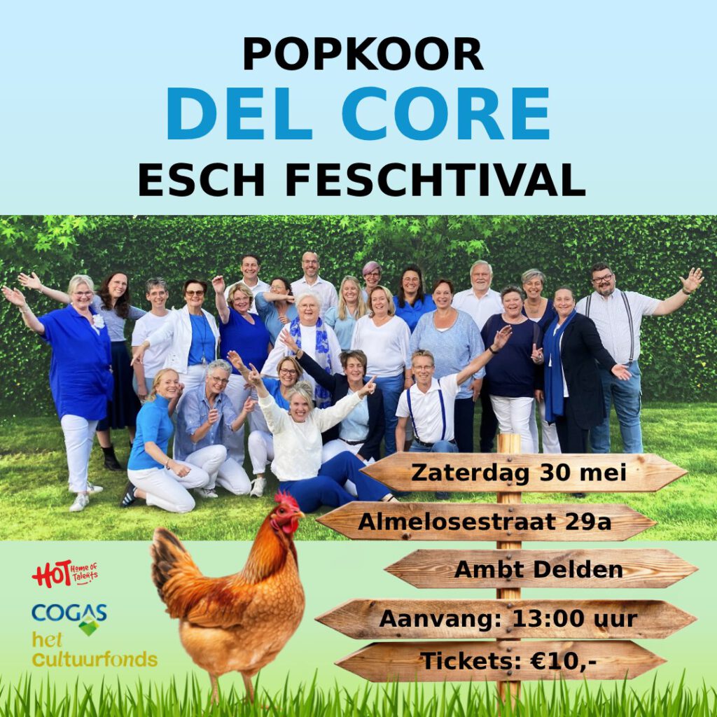 Op 30 mei organiseert popkoor Del Core uit Delden een festival met o.a. live muziek, hapjes en drankjes, spelletjes en een speurtocht. Dit alles op een prachtige plek in Ambt-Delden! … Meer lezen over Popkoor Del-Core Esch-Festival
